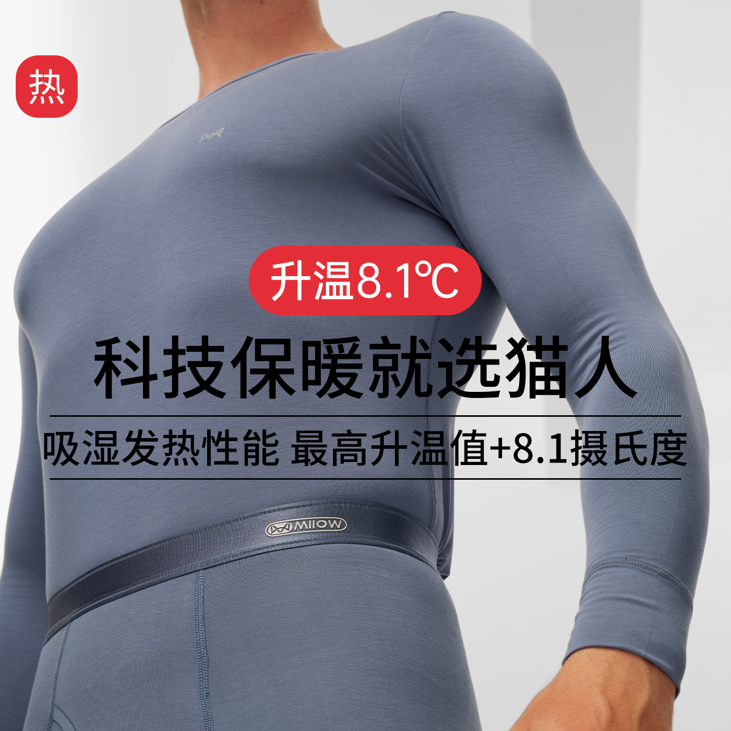 秋冬季 猫人男士 2025新款 秋衣秋裤 蚕丝羊毛打底两件套 保暖内衣套装