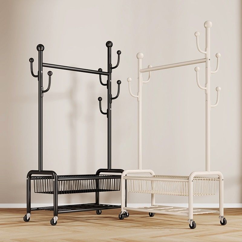 挂衣架落地家用室内可移动晾衣架子阳台晾衣杆简易衣帽架加粗双层