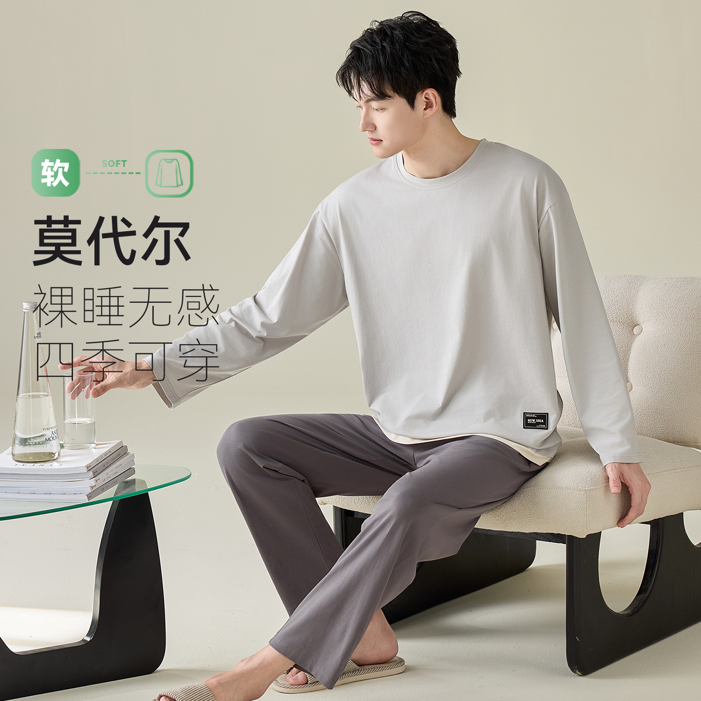 睡衣春秋季 纯棉长袖 套装 安之伴 家居服新款 男士 休闲大码 巨柔软