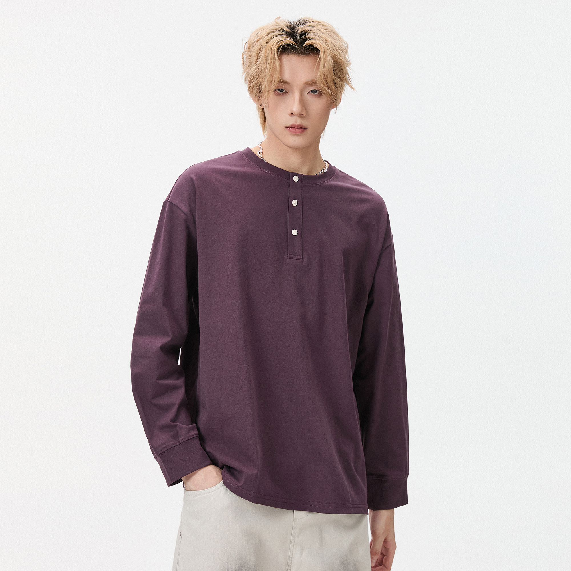 亨利领重磅长袖 新款 衫 阔版 太平鸟男装 假两件宽松打底衫 T恤25秋季
