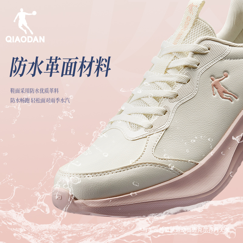 皮面轻便减震软底休闲慢跑鞋 乔丹防水运动鞋 新款 女2025秋季 跑步鞋
