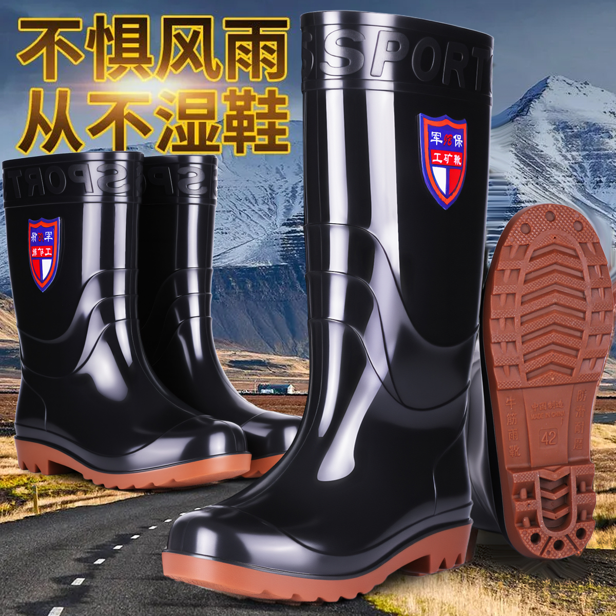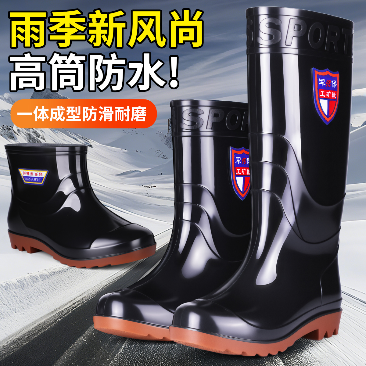胶鞋 保暖防水迷彩雨靴男防滑工地劳保雨靴短筒水鞋 男士 中高筒雨鞋