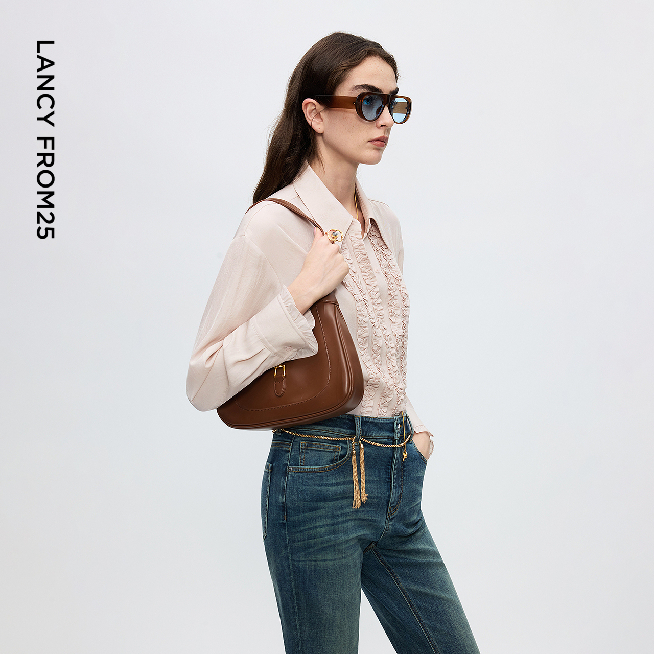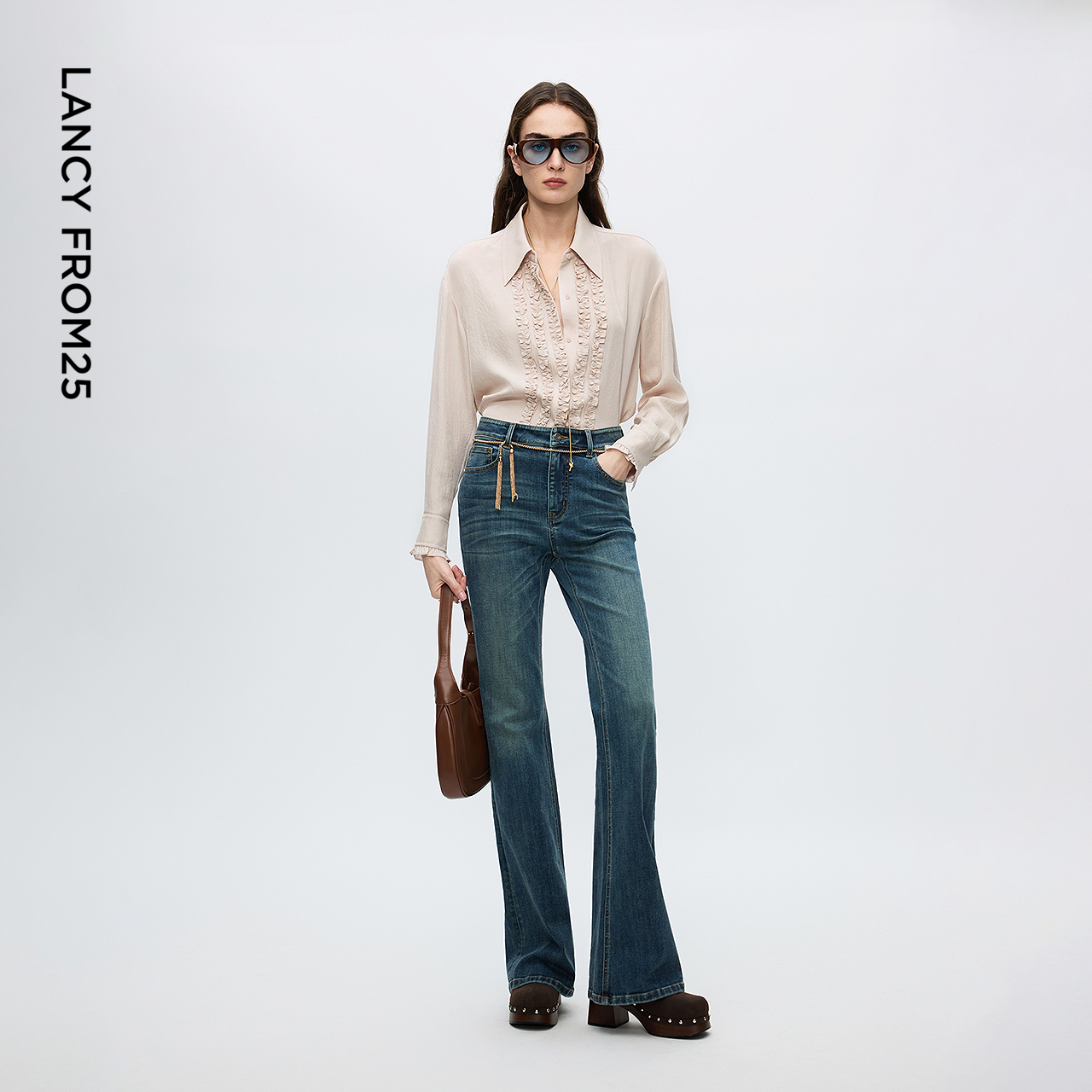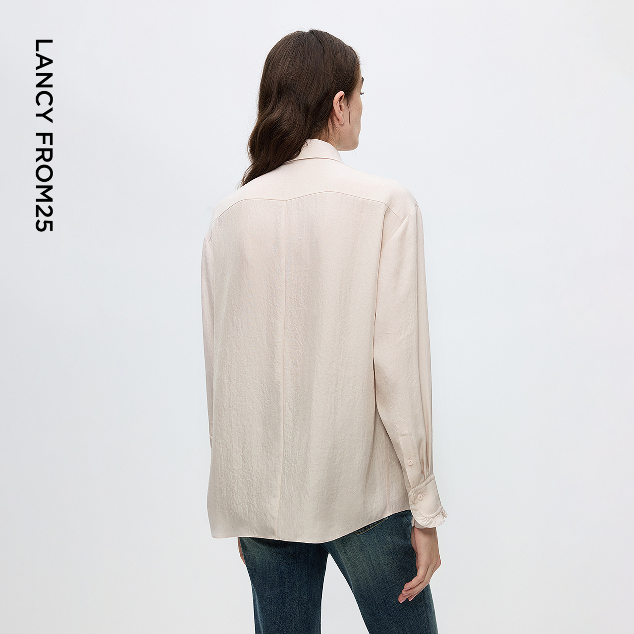 新款 木耳花边设计感上衣2025年冬季 二醋酸通勤风衬衫 朗姿法式