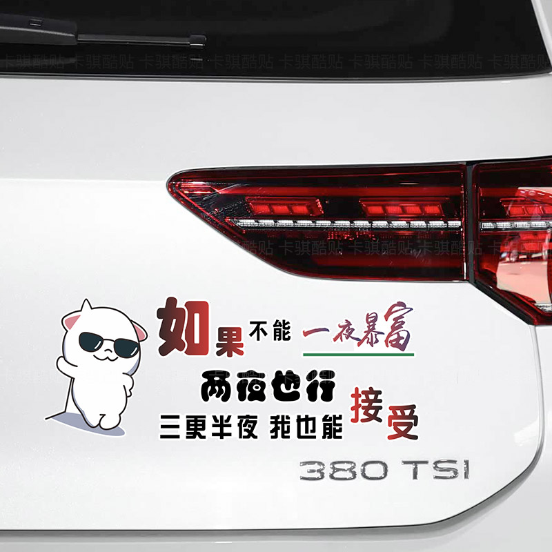 如果不能一夜暴富两夜也行网红搞笑车贴汽车装 饰划痕遮挡车身贴纸