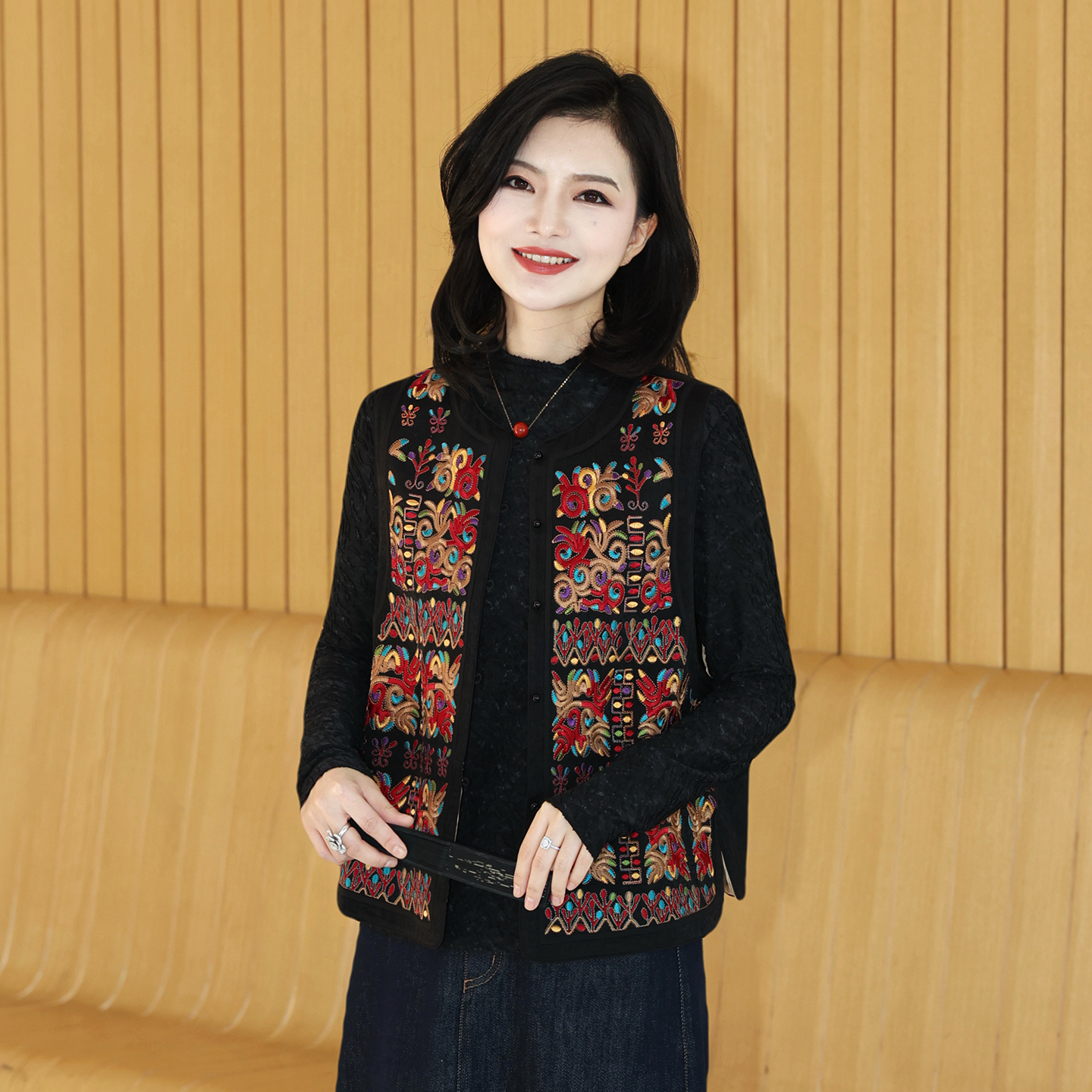 马甲外套女秋季 枫竺真丝国风马夹新中式 短款 香云纱60万针刺绣