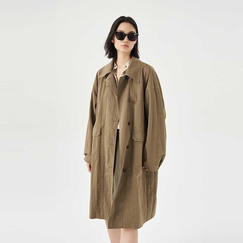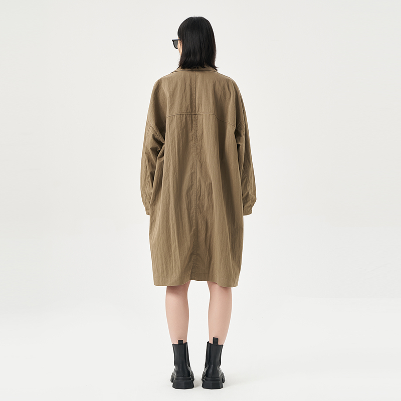 新款 LEDIM 卡其色风衣外套女2025秋季 双色连帽阔版 上衣 WANG红标