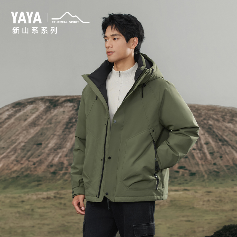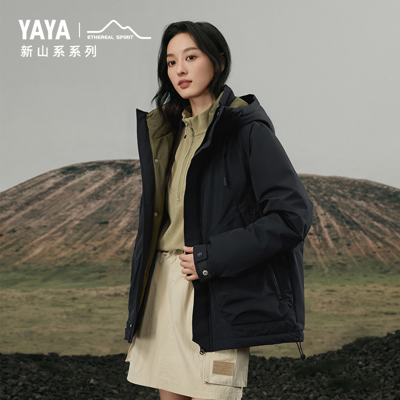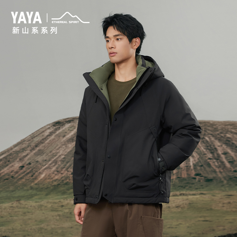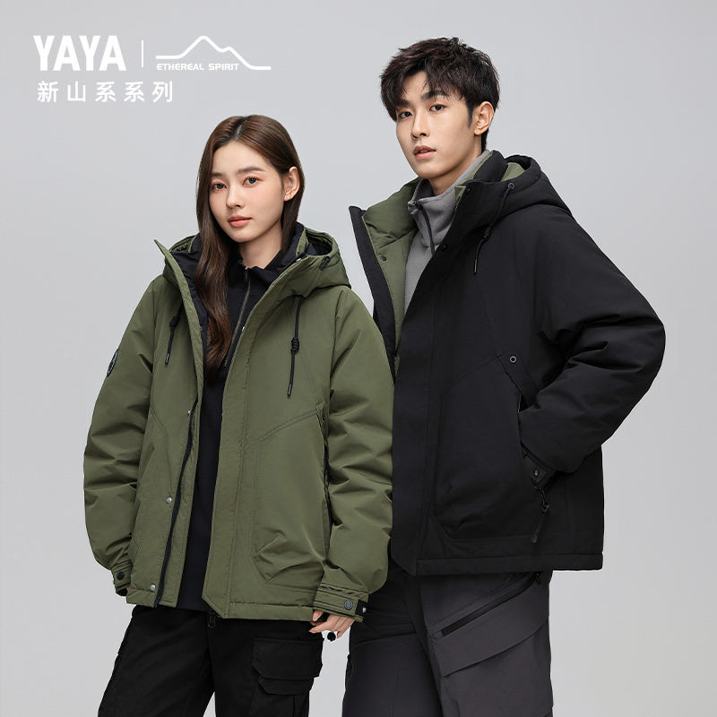 YAYA鸭鸭羽绒服2025秋冬新款 立领轻薄双面穿百搭拼接外套 女士短款