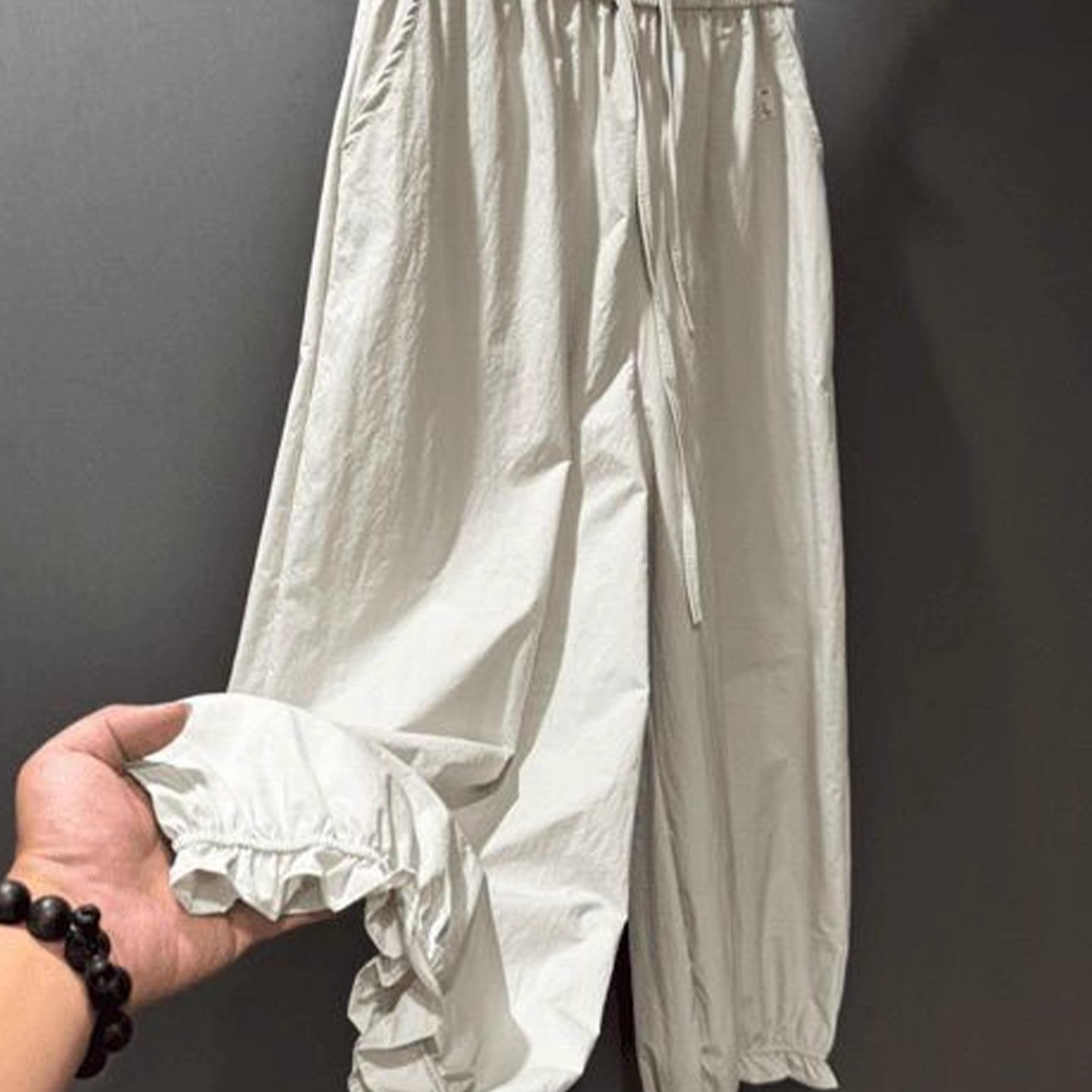 宽松九分女潮流灯笼裤 小众设计感时尚 阔腿松紧花边休闲裤 大码 新款