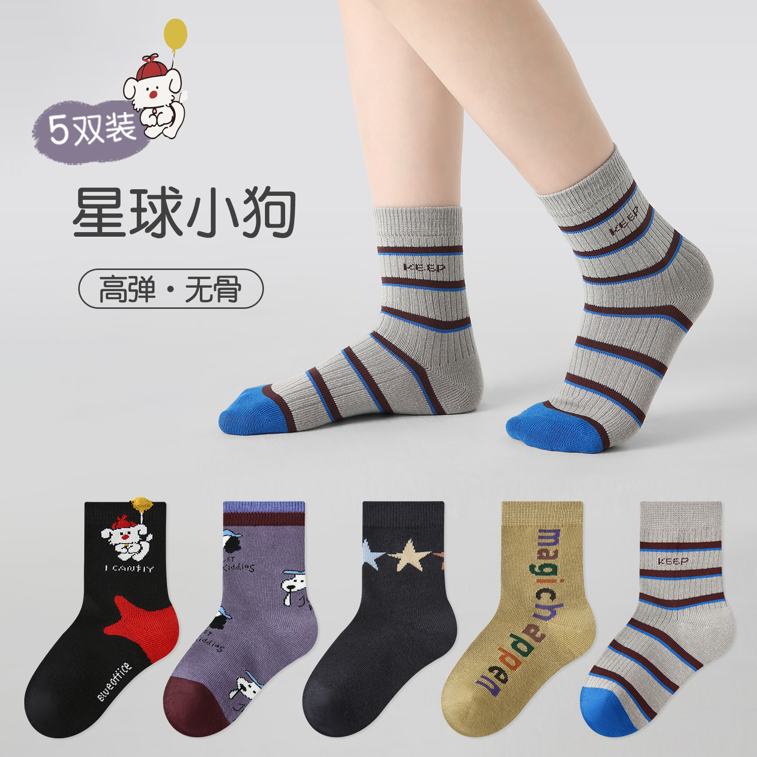 儿童袜子春秋纯棉卡通中筒袜男童韩版 无骨袜 运动潮宝宝中大童秋季