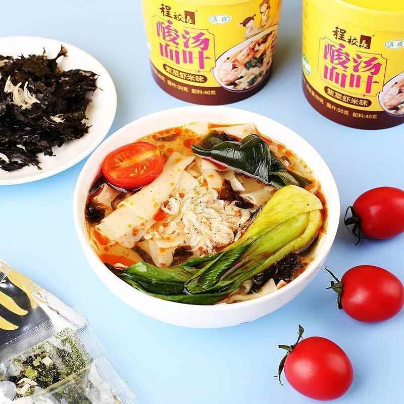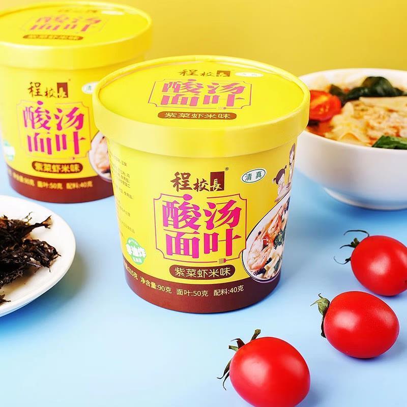 程校长酸汤面叶旗舰店桶装 方便面荞麦泡面速食面片紫菜虾米味清真