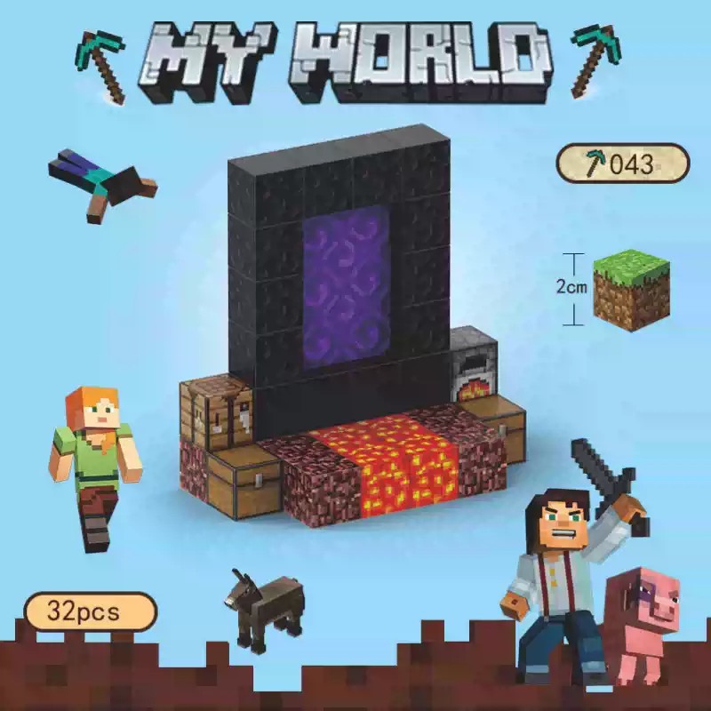 我 男礼物 世界磁力积木方块末地传送天堂地狱门儿童益智玩具拼装