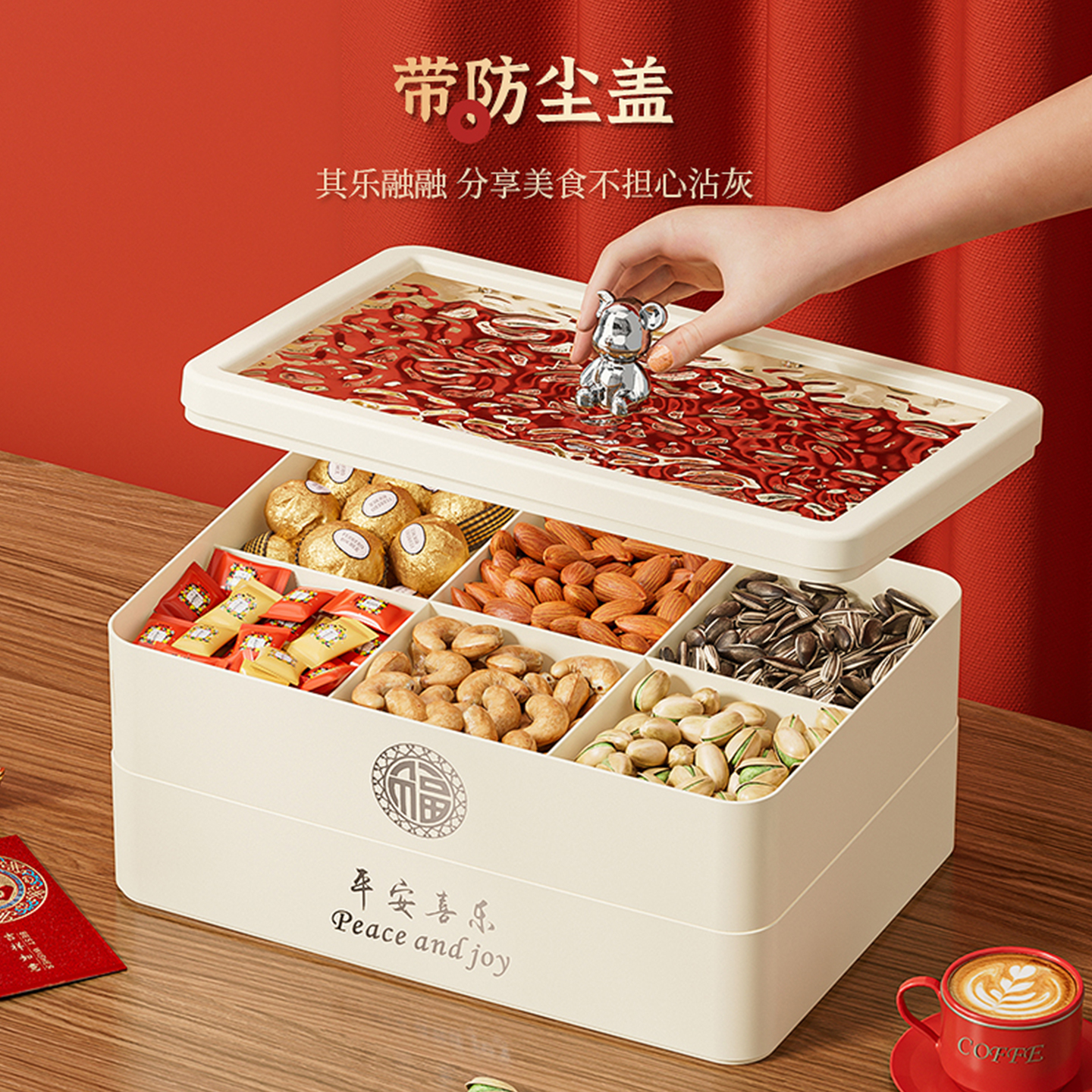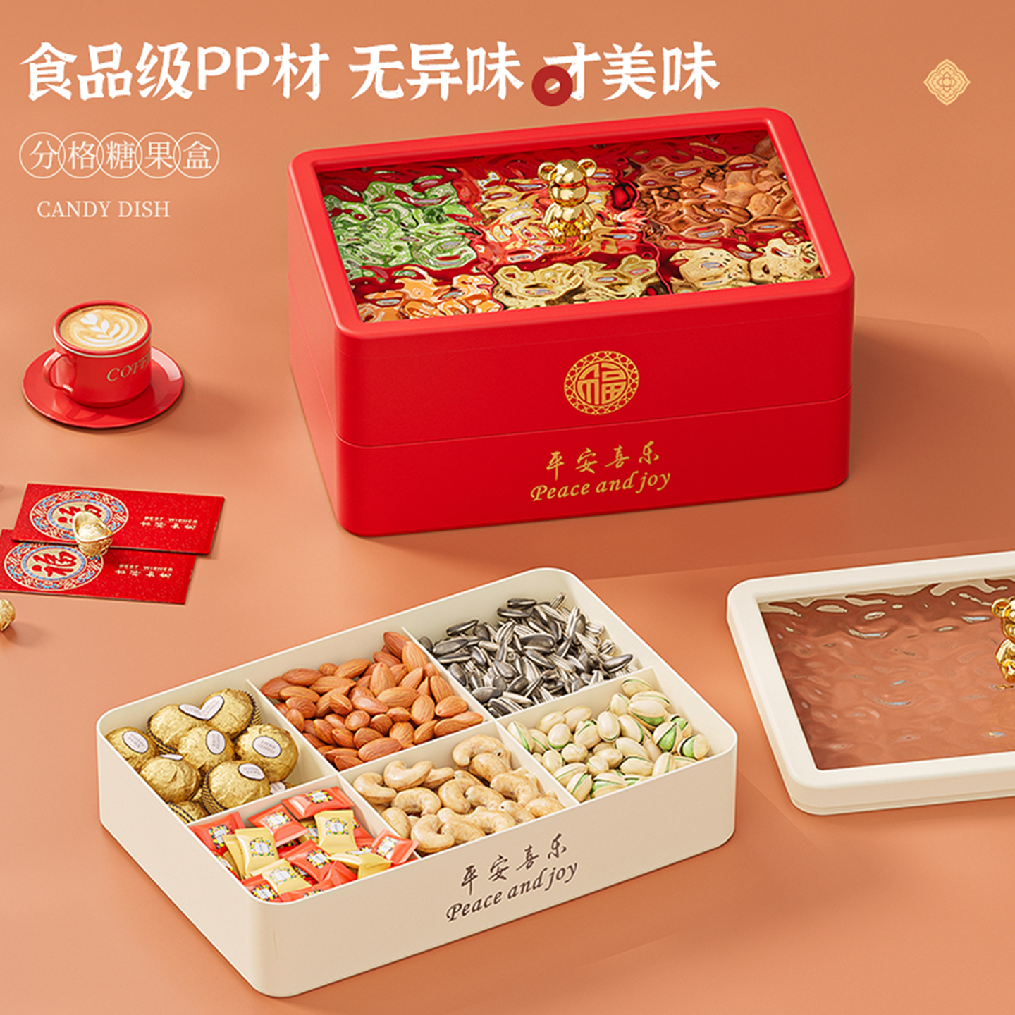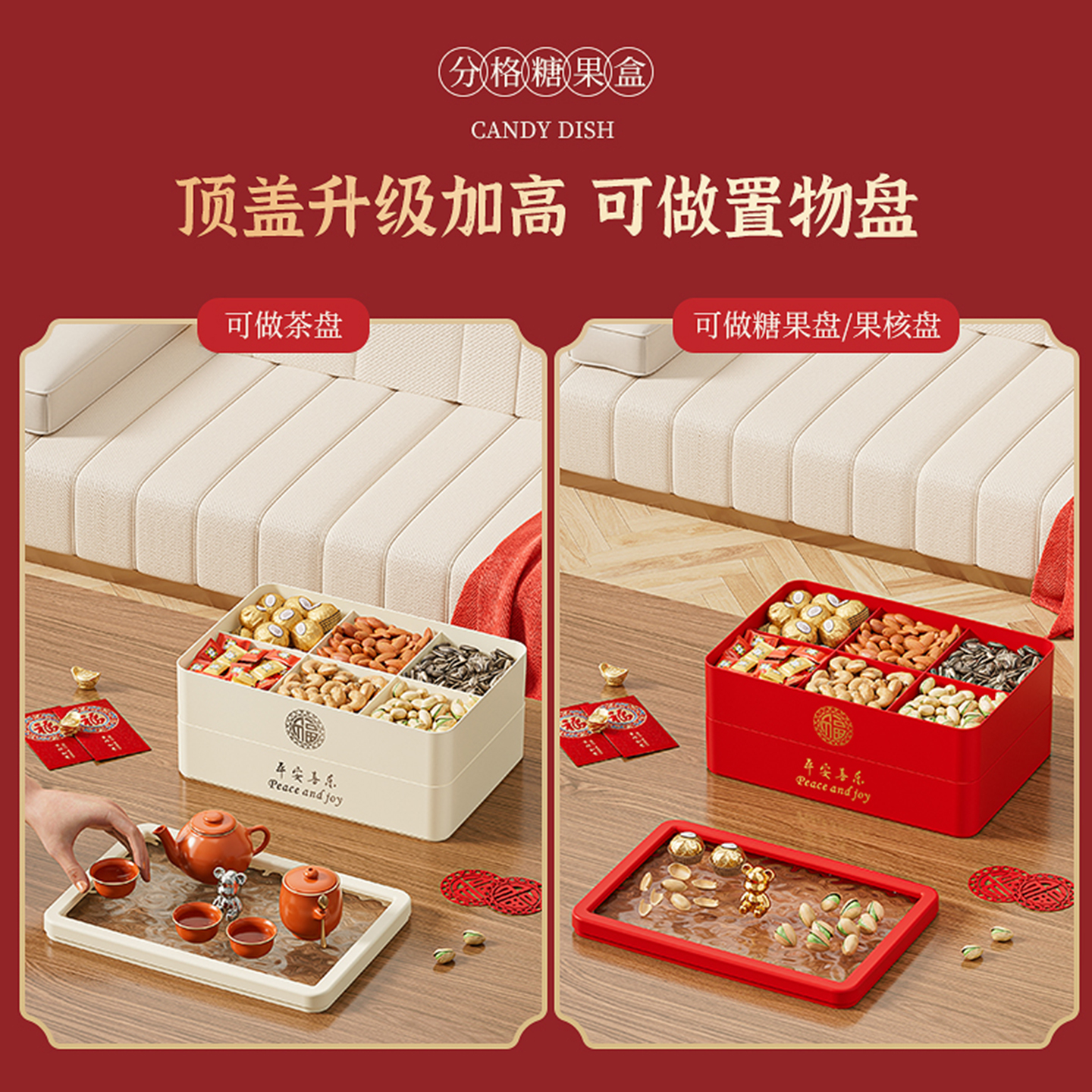喜事糖果盘轻奢高档结婚乔迁之喜干果盘红色客厅干坚果瓜子收纳盒