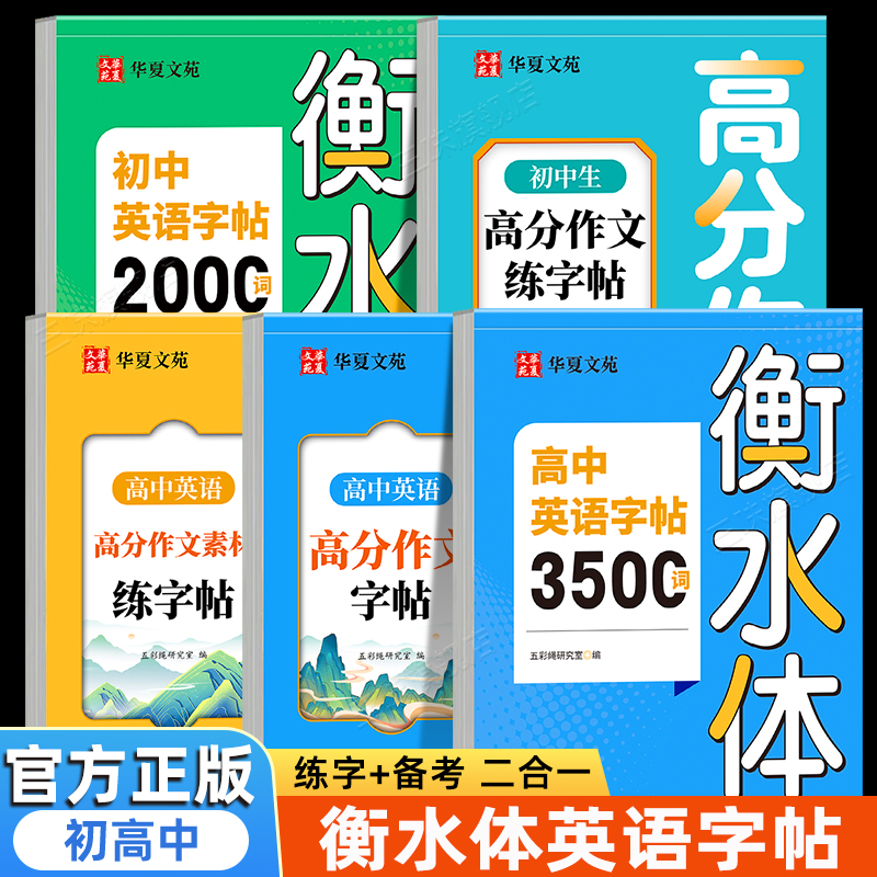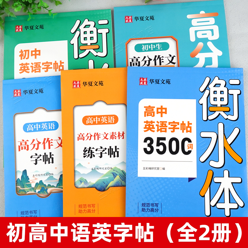 衡水体英语字帖高中生初中生专用练字帖中考高考作文素材单词3500词短语描红上下册人教版 26个英文字母同步练习文言文范文华夏必修