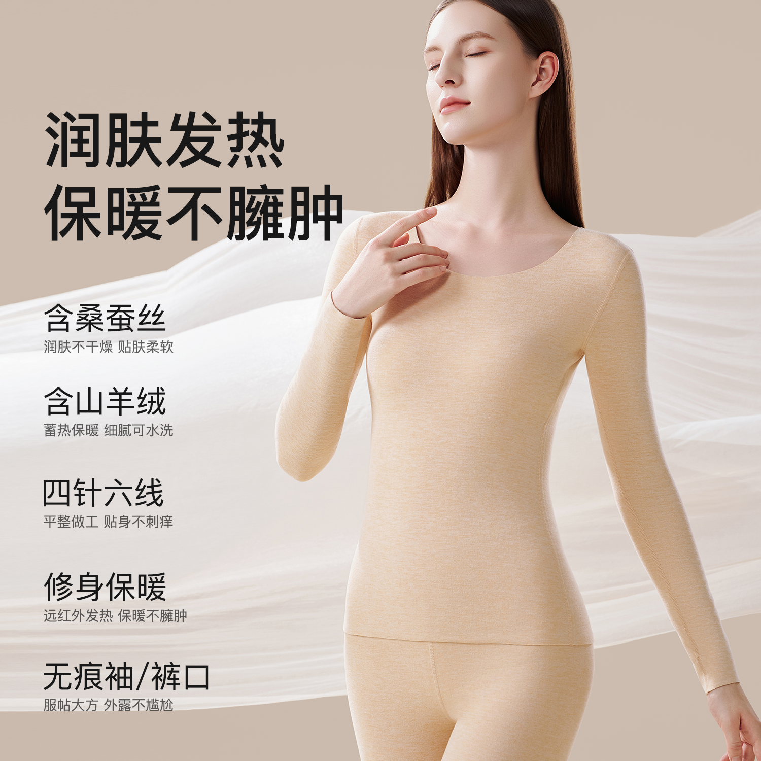 贴身无痕秋衣秋裤 保暖内衣女套装 含羊绒蚕丝发热加厚绒德抗菌冬季
