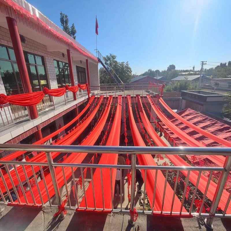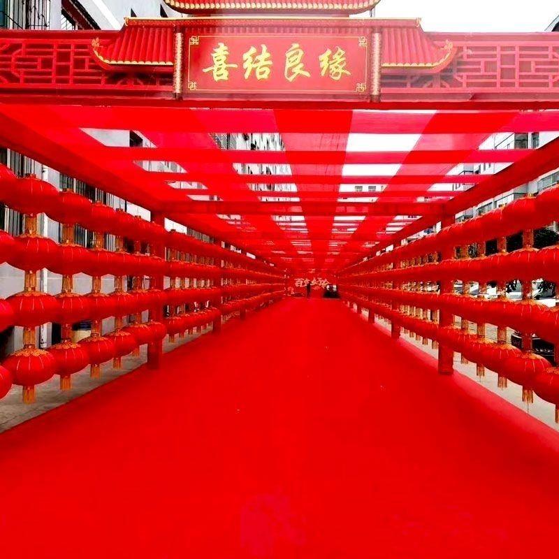 婚庆红绸布吊顶纱幔韩式 饰婚礼堂布置云顶布艺道具 酒店舞台顶部装