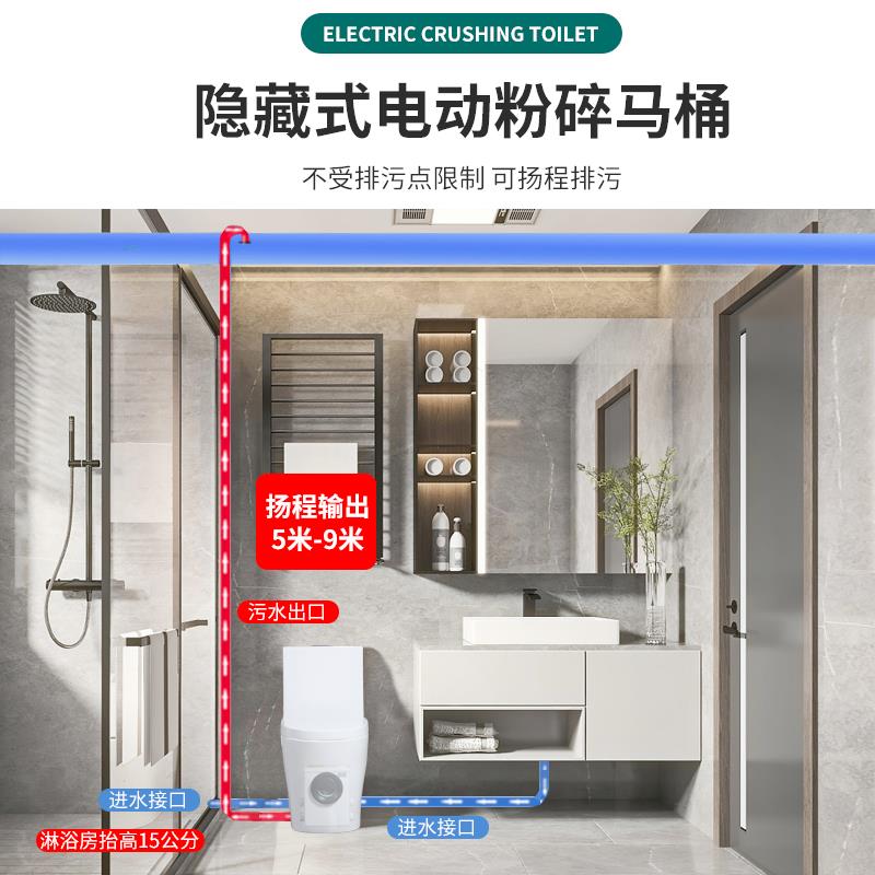 电动粉碎马桶污水提升泵别墅地下室墙排无管道隐藏式 提升器座便器