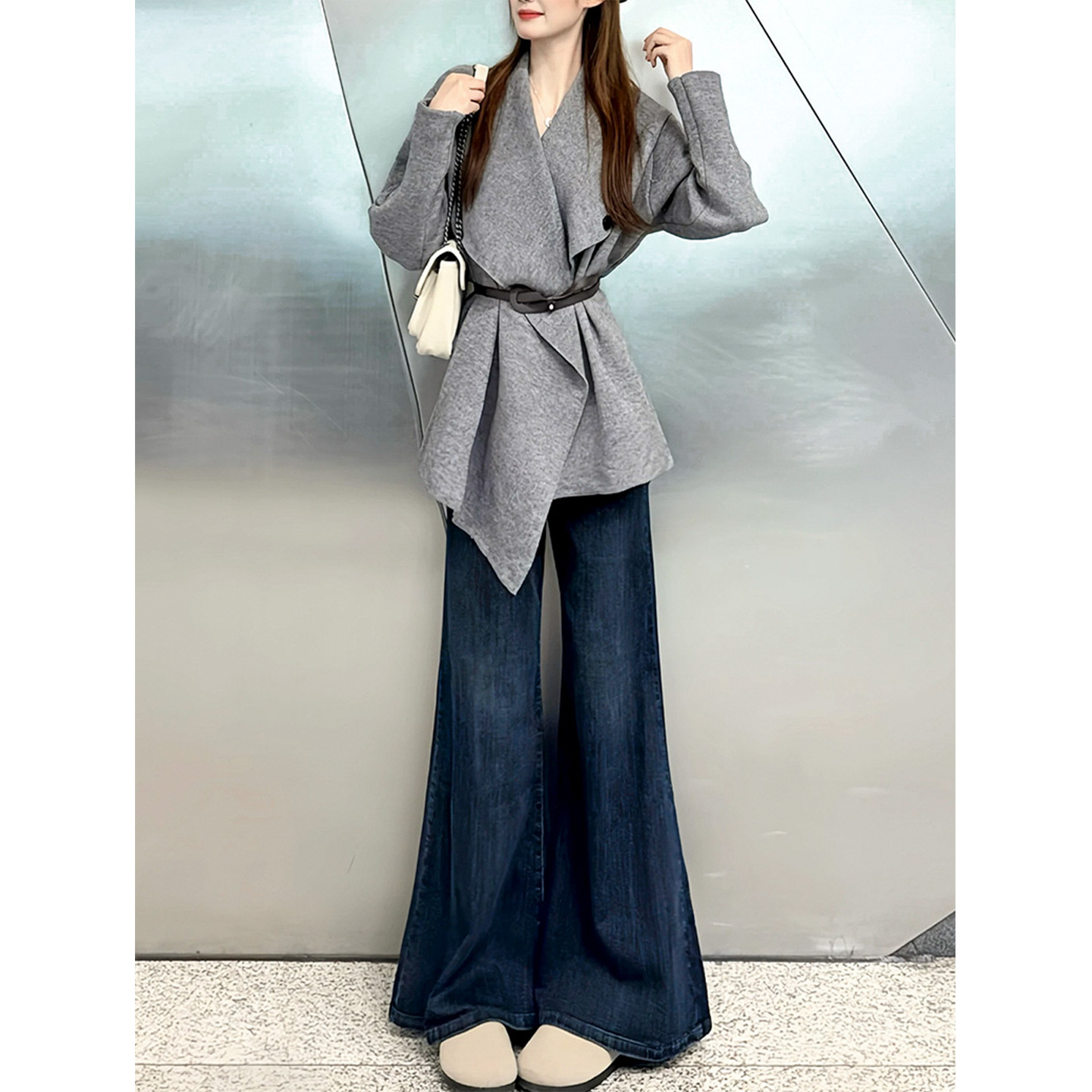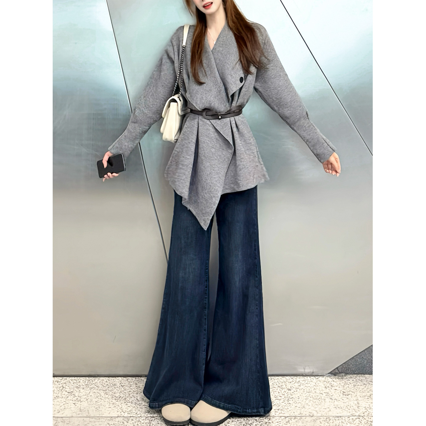 复古休闲通勤风显瘦显腿长牛仔阔腿裤 IEF 韩版 新款 爱依服2025秋季