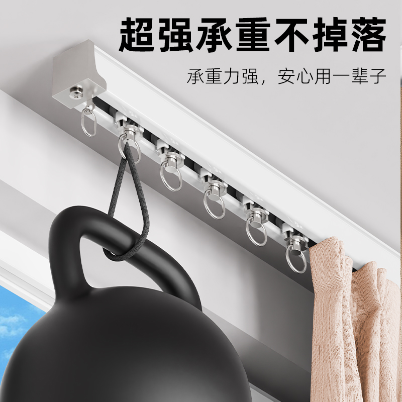 铝合金窗帘轨道静音卧室客厅阳台飘窗零漏光窗帘杆侧装 滑轨 挂钩式