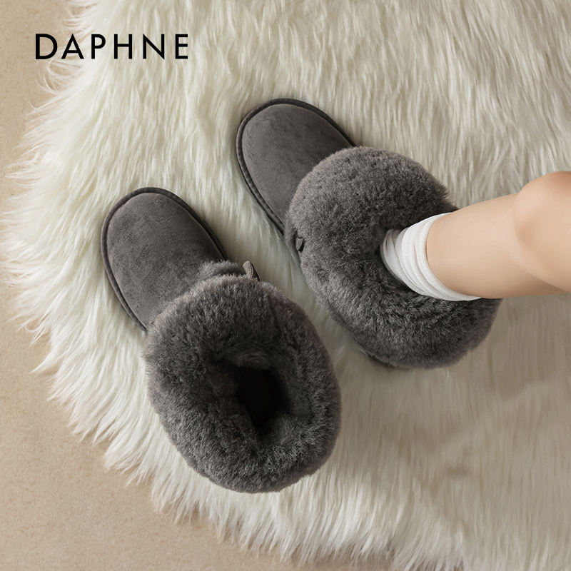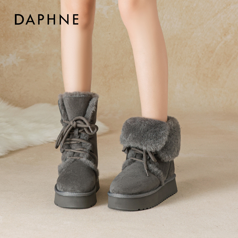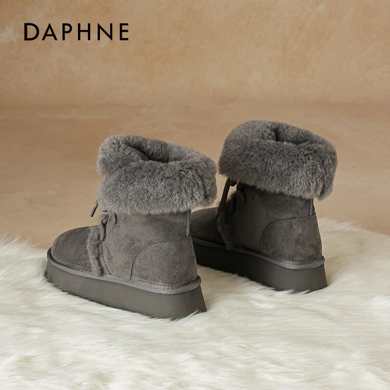 子 加绒保暖短靴东北毛毛棉鞋 达芙妮灰色厚底雪地靴女2025新款 冬季