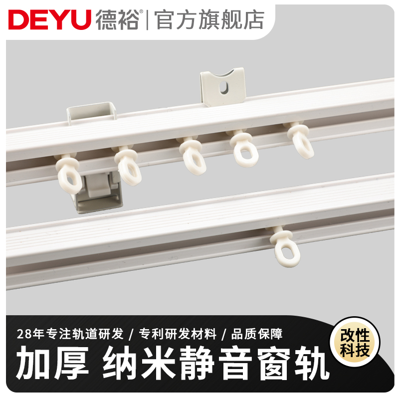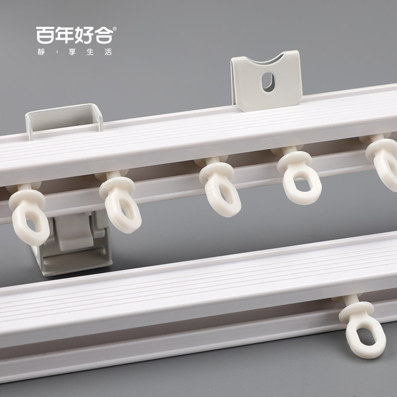 窗帘轨道滑轮窗帘杆纳米直轨顶装 滑轨静音单双导轨滑道 侧装