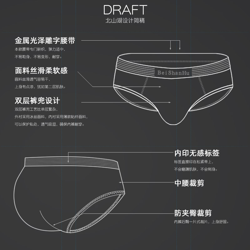 超薄款 男三角运动底裤 冰丝男士 性感透气内裤 衩 三角内裤 北山湖夏季