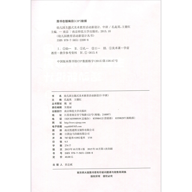 幼儿园教育活动新设计丛书 孔起英 320g 美术教育活动新设计 大视野 社 中班 南京师范大学出版 幼儿园主题式 王健红