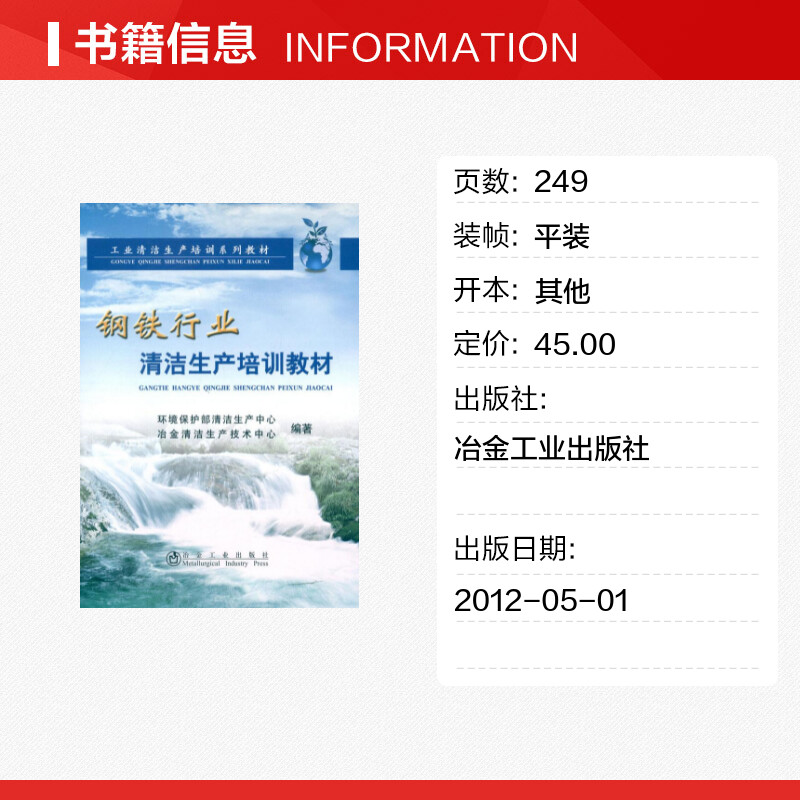 著 冶金工业大中专 新华书店正版 钢铁行业清洁生产培训教材 冶金工业出版 等 图书籍 社 环境保护部清洁中心