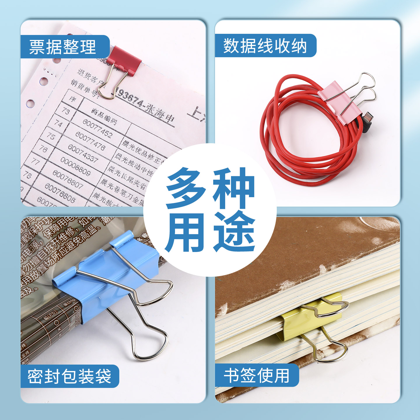 彩色长尾夹夹子文件夹铁票夹燕尾夹铁票据夹照片夹办公用品学生文具书夹试卷夹票夹铁票据大号收纳混装 开学