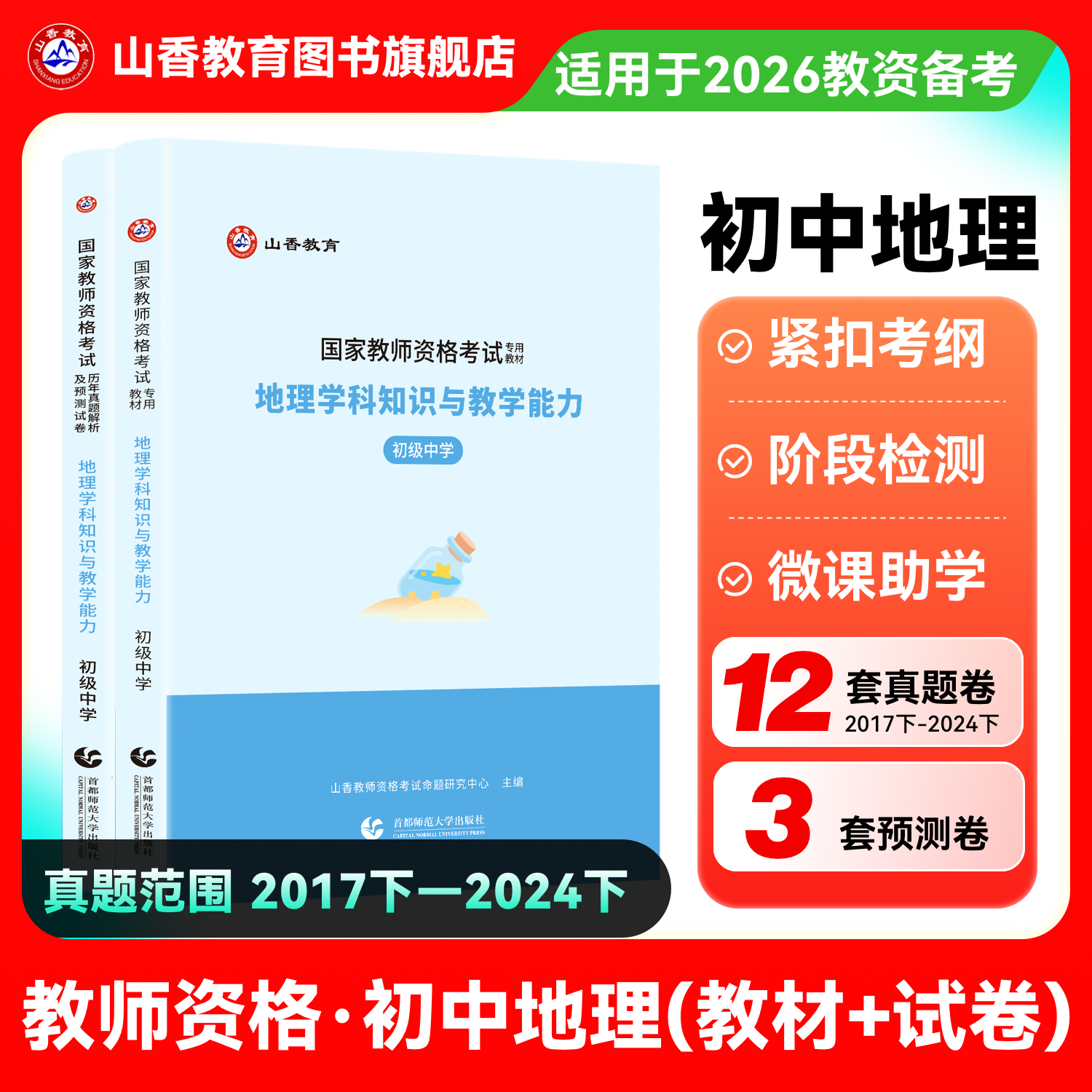 山香教育新版 中学教师资格证学科专业初中地理学科知识与教学能力教材及历年真题预测试卷全2册初中地理