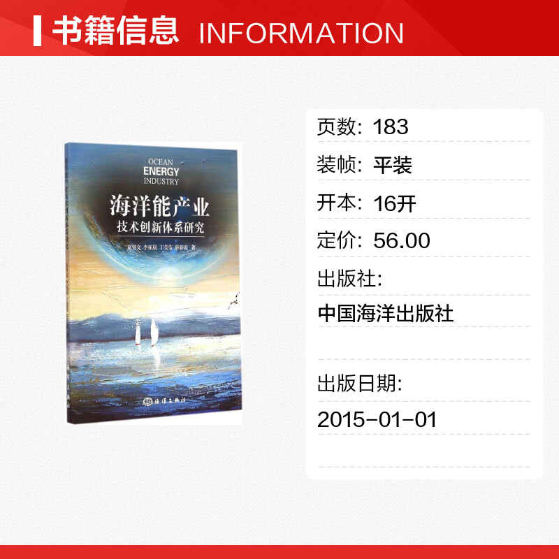 图书籍 社 丁莹莹 著作 其它科学技术专业科技 著 李拓晨 等 中国海洋出版 海洋能产业技术创新体系研究 新华书店正版 夏登文