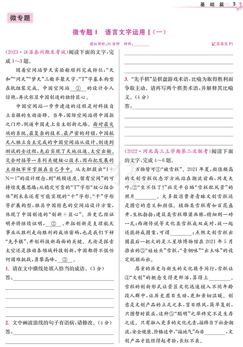 全国卷 小题狂做高考语文全程版 高考总复习高一高二高三基础专题选择填空题专项训练新题型附赠答案解析 恩波教育 2024新版