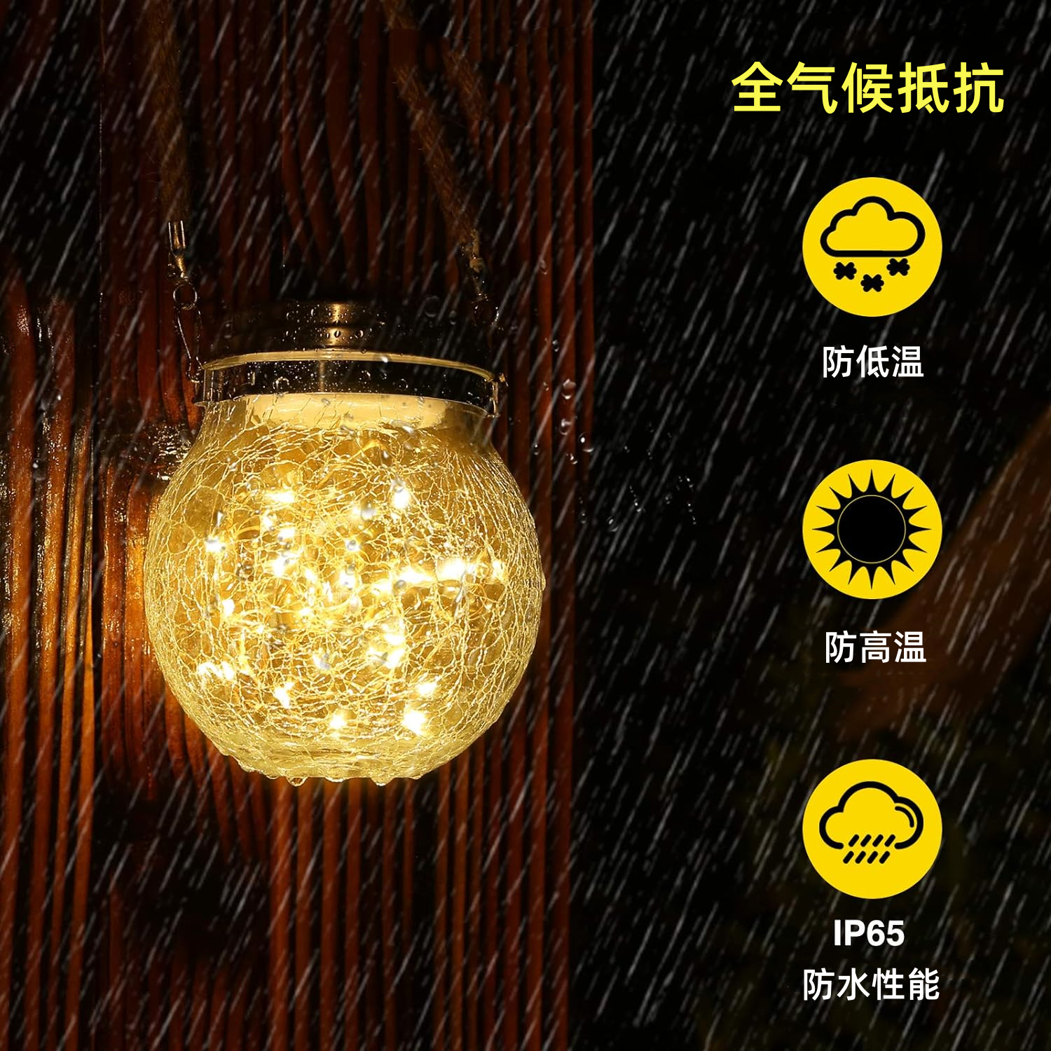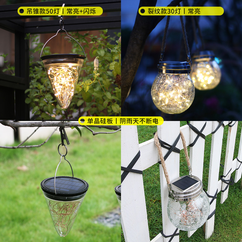太阳能灯户外庭院灯家用防水LED吊灯别墅花园景观灯玻璃裂纹挂灯