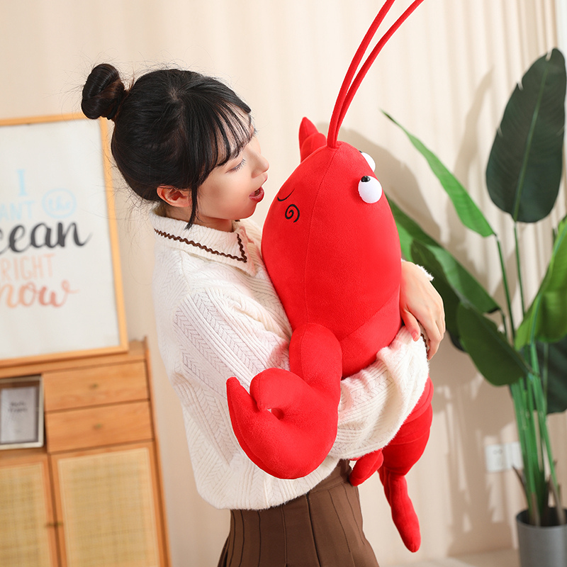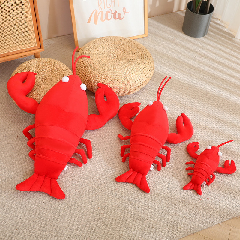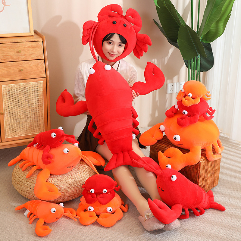 仿真龙虾玩偶毛绒玩具小龙虾公仔抱枕螃蟹布偶娃娃红色男孩儿童