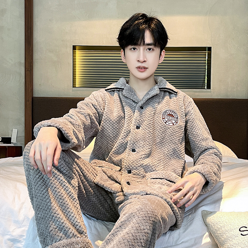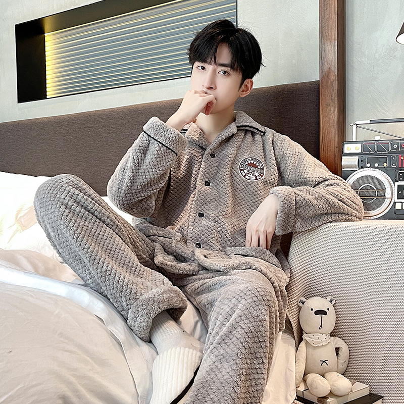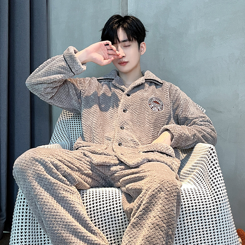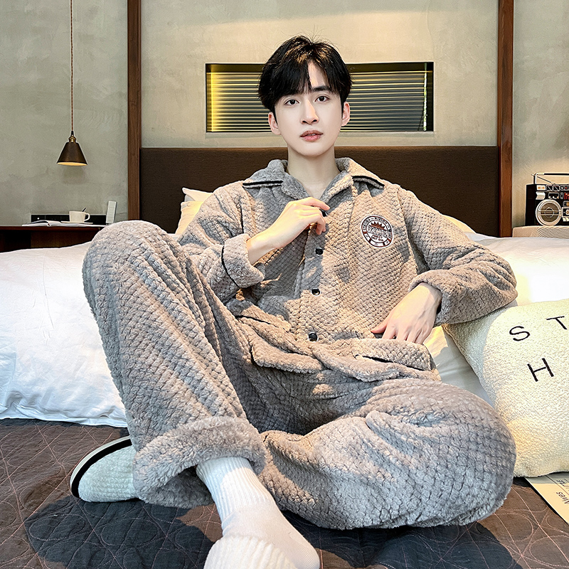 男士 睡衣男冬季 冬天套装 男款 家居服 珊瑚绒加绒加厚秋冬法兰绒冬款