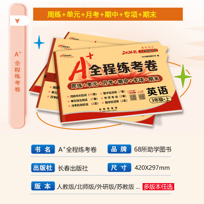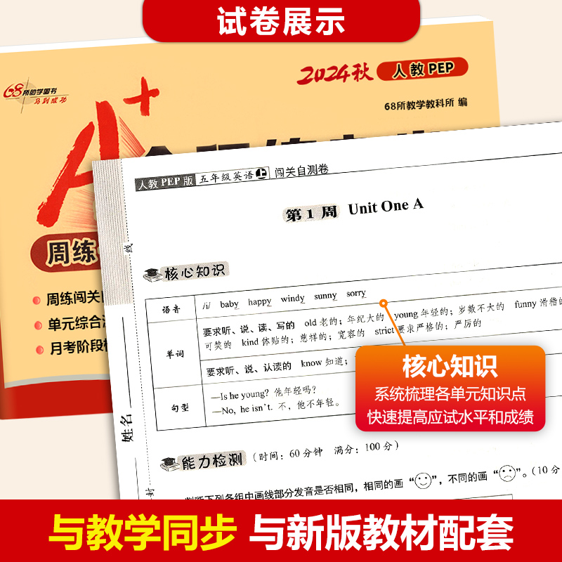 月考 68所名校图书 全程练考卷五年级上册英语人教PEP 期末试卷 专项 期中 单元 周练 小学5年级试卷上册英语 2024秋新版