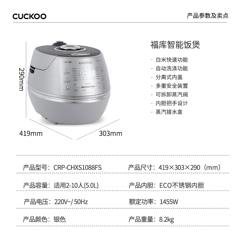 CUCKOO 韩国进口预约自动洗涤杀菌语音电饭锅 福库5L压力IH电饭煲
