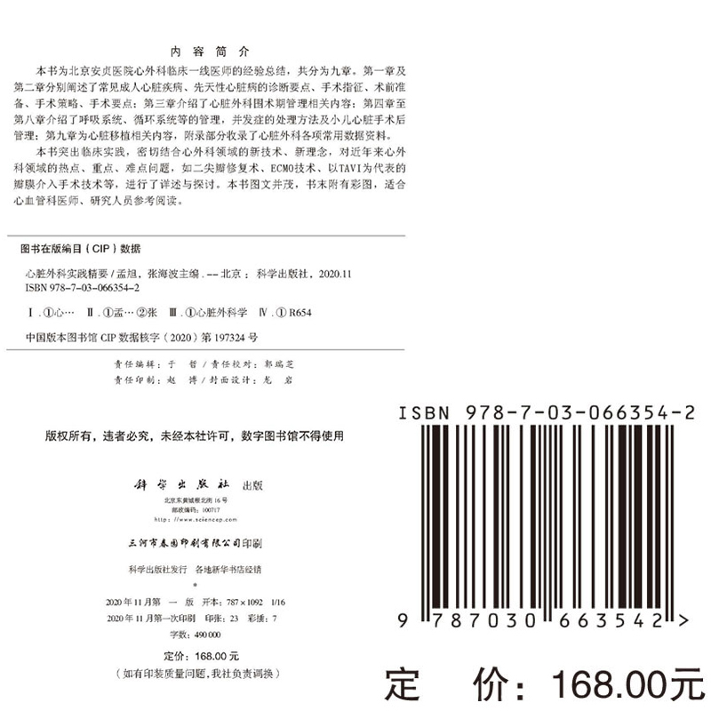 现货 社孟旭张海波9787030663542 心脏外科实践精要科学出版