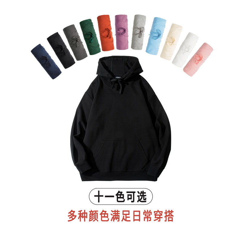 纯色黑色连帽卫衣女春秋薄款 上衣 简约内搭外穿宽松显瘦带帽连帽衫