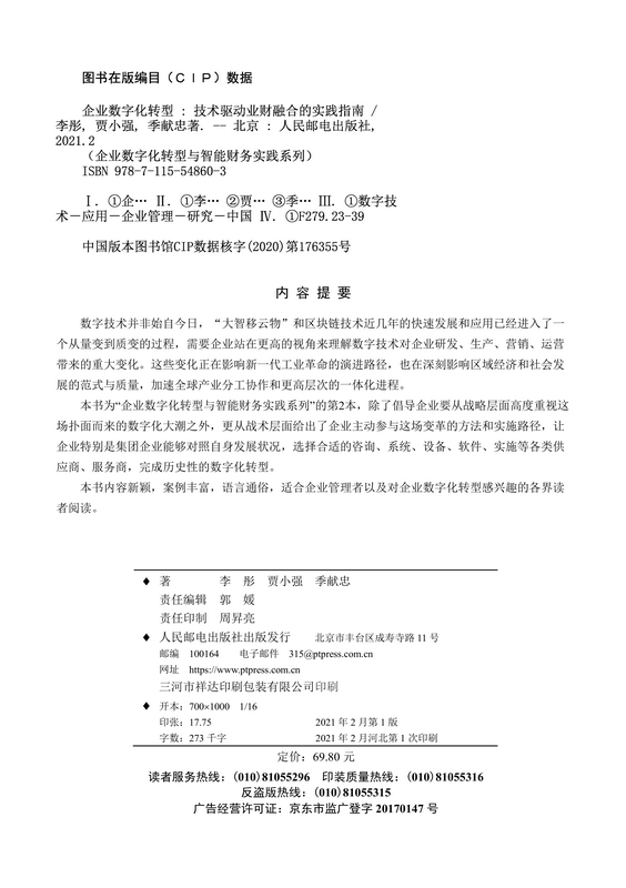 献忠企业管理者企业数字化转型感兴趣 正版 实践指南李彤贾小强季 企业数字化转型技术驱动业财融合 各界读者阅读参考使用 书籍