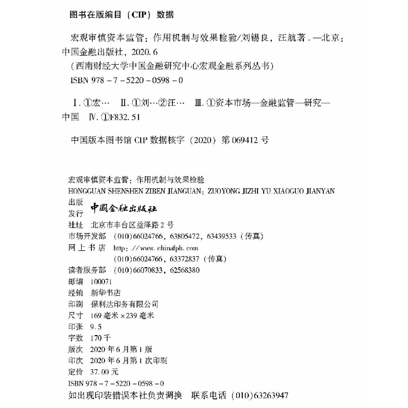 汪航 刘锡 中国金融出版 社 书籍 当当网 正版 宏观审慎资本监管:作用机制与效果检验