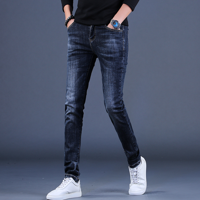 男深蓝色修身 高端牛仔裤 小脚裤 弹力百搭男士 潮 2025高档款 长裤 秋季
