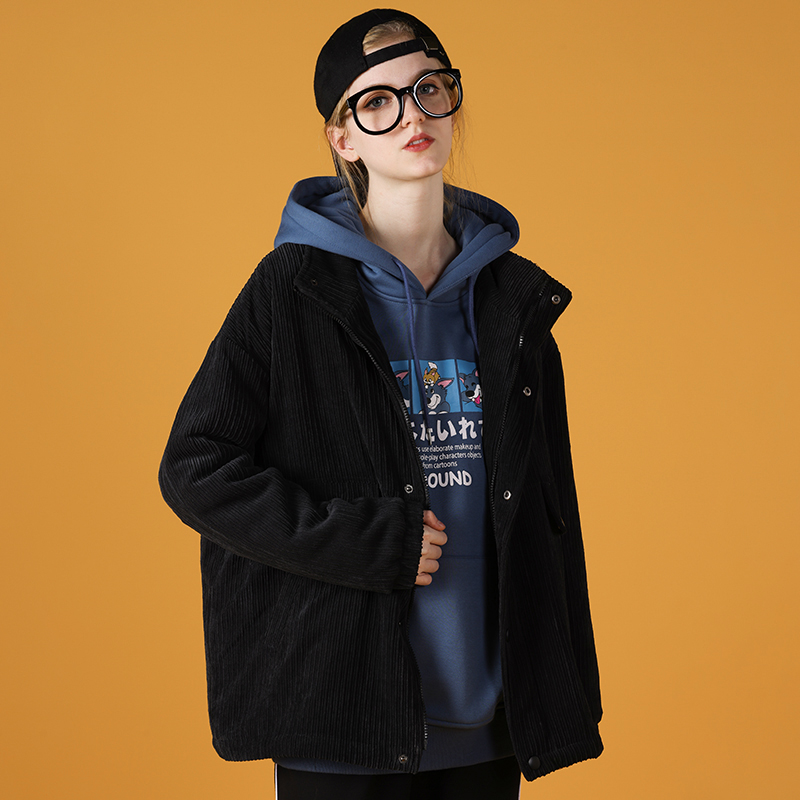 TeenieWeenie小熊女棉服25冬灯芯绒撞色拼接翻领棉衣 双11预售