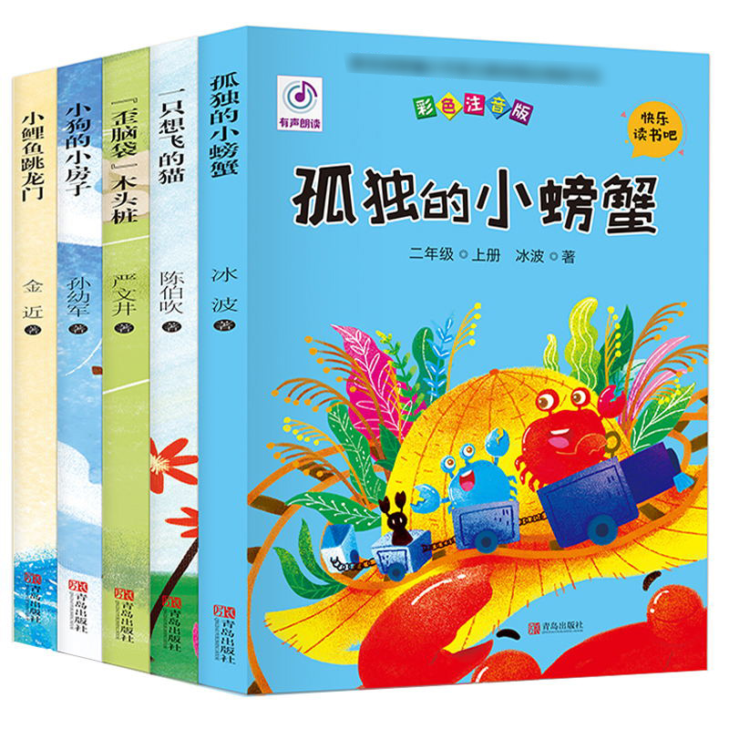 快乐读书吧二年级上全套5本 狐独 小鲤鱼跳龙门注音版 小螃蟹歪脑袋木头桩上册人教版 小螃蟹 一只想飞猫小狗小房子孤独 现货正版