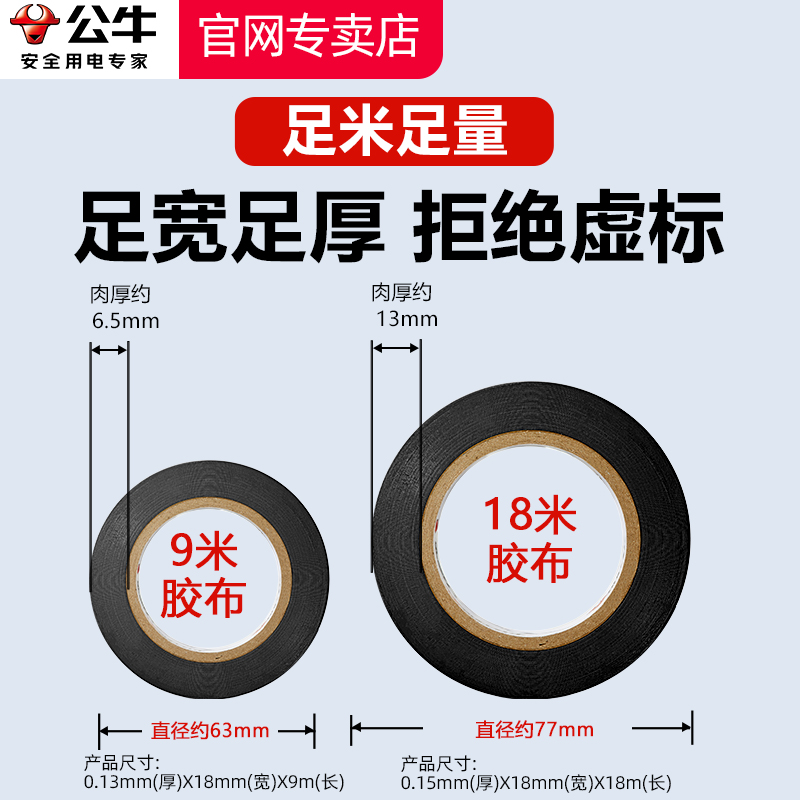 公牛电工胶带pvc电气绝缘防水胶布耐高温阻燃黑色9 18米超薄大卷