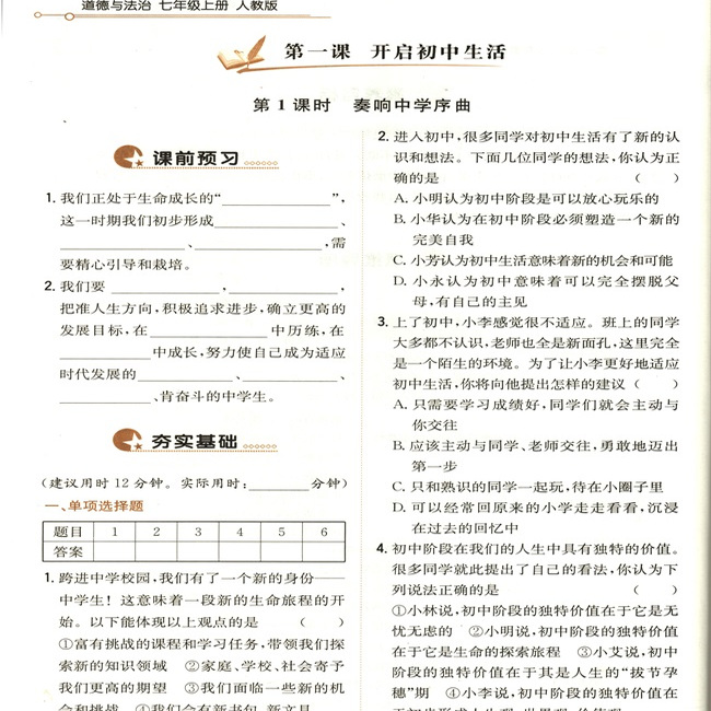 同步练 2024年长沙版 社全新正版 RJ初中初一1教科书配套湖南教育出版 综合练含答案道德与法治 学法大视野政治7七年级上册人教版