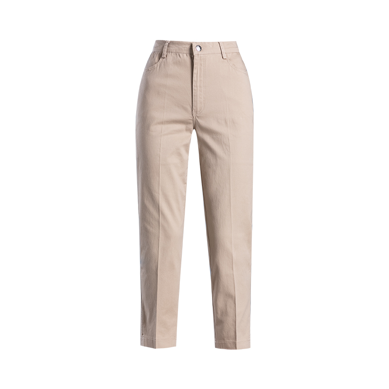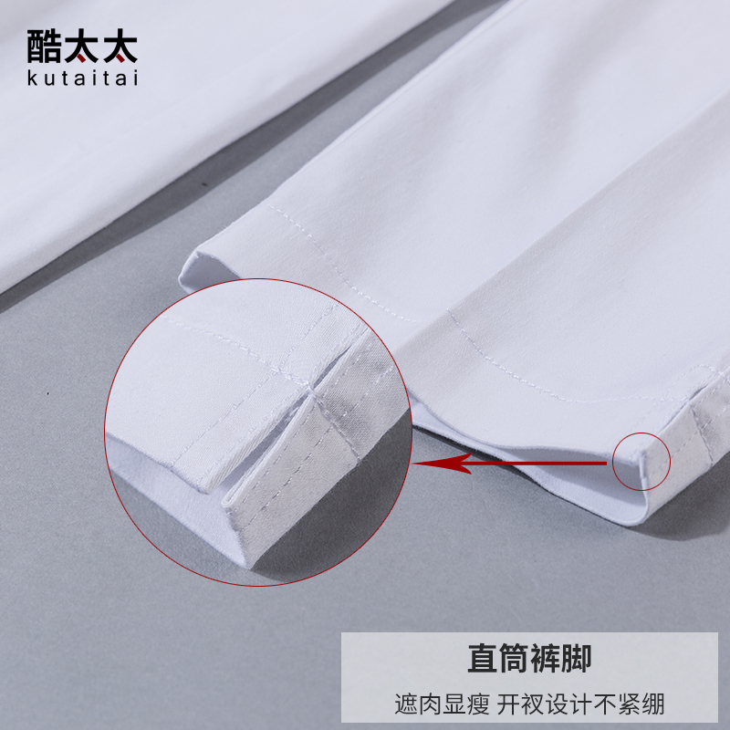 中年女裤 女弹力直筒纯棉九分裤 白色休闲裤 酷太太2025春秋高腰大码