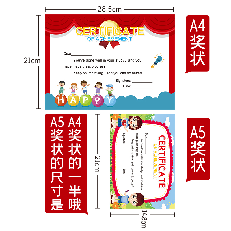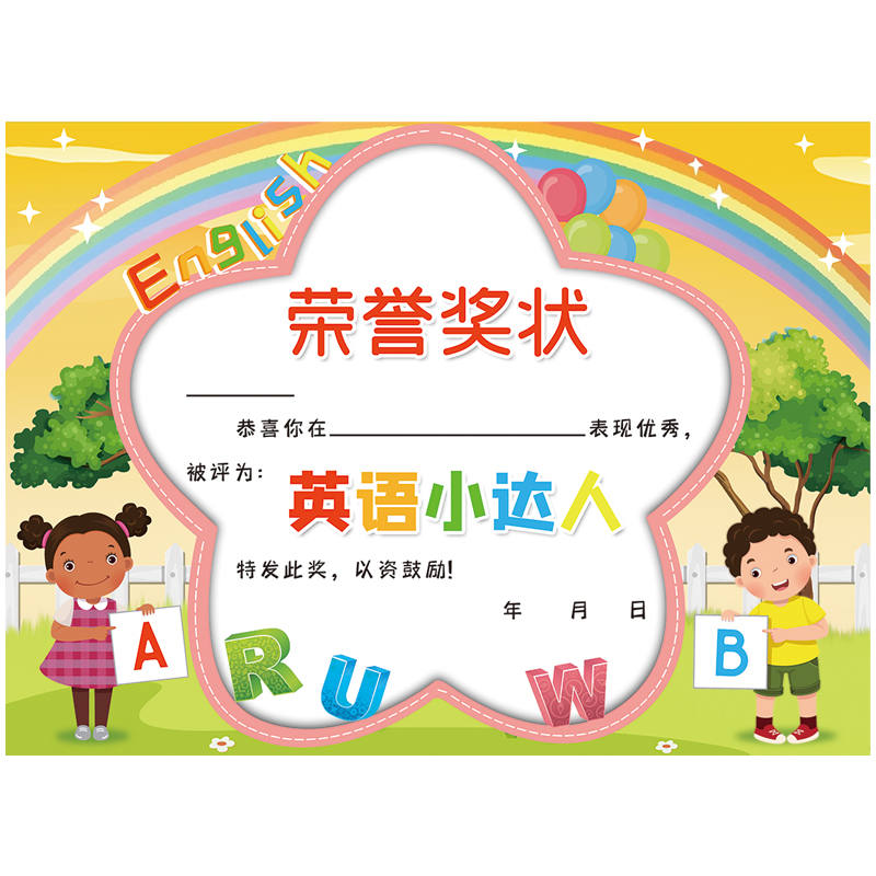 157克铜版 纸 加厚铜版 A4英文奖状 创意 英语小达人可定制 纸奖状小奖状 幼儿园小学生奖状 培训机构英语奖状
