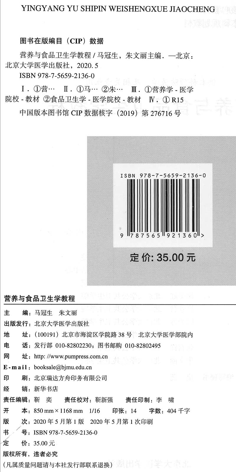 营养与食品卫生学教程北京大学预防医学核心教材李勇北京大学医学出版 社9787565921360