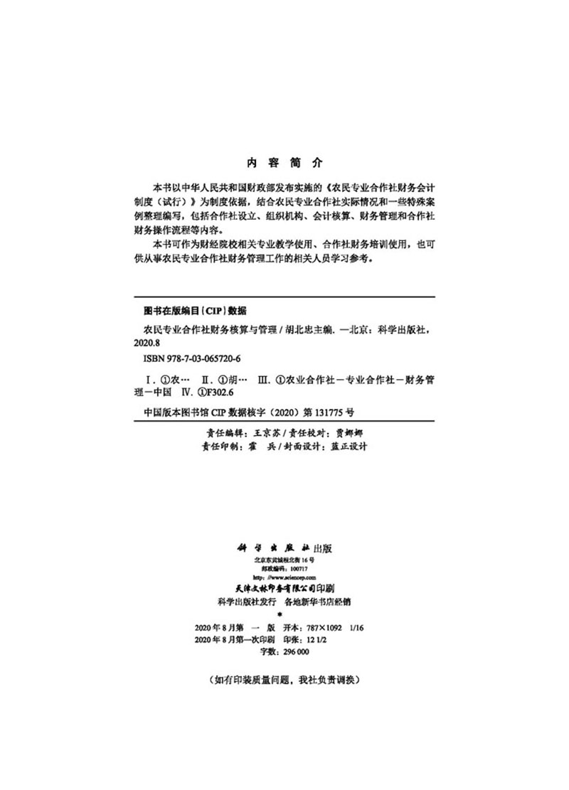 现货农民专业合作社财务核算与管理 社9787030657206 主编胡北忠科学出版