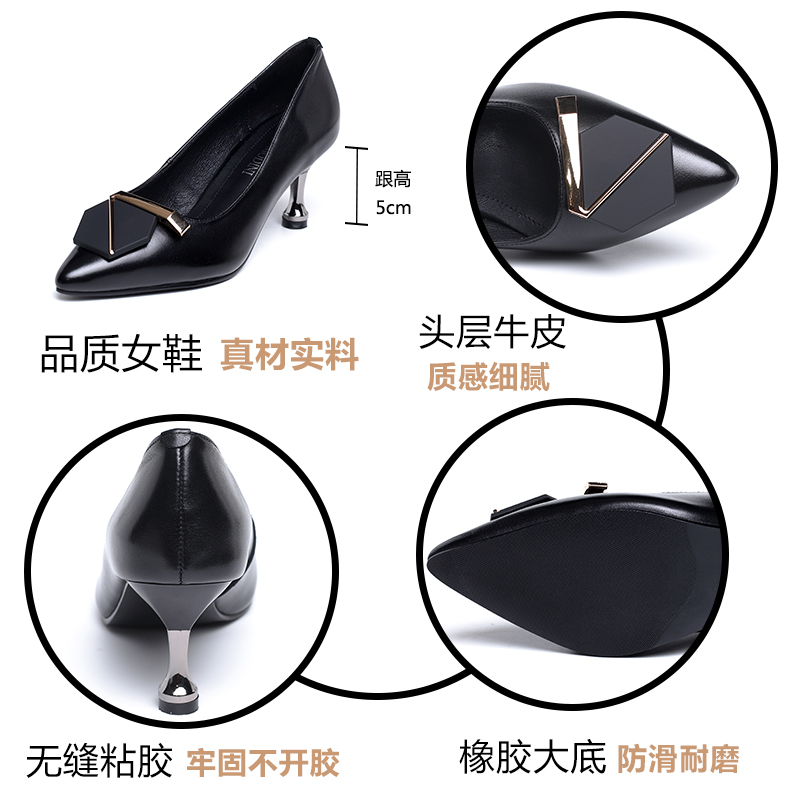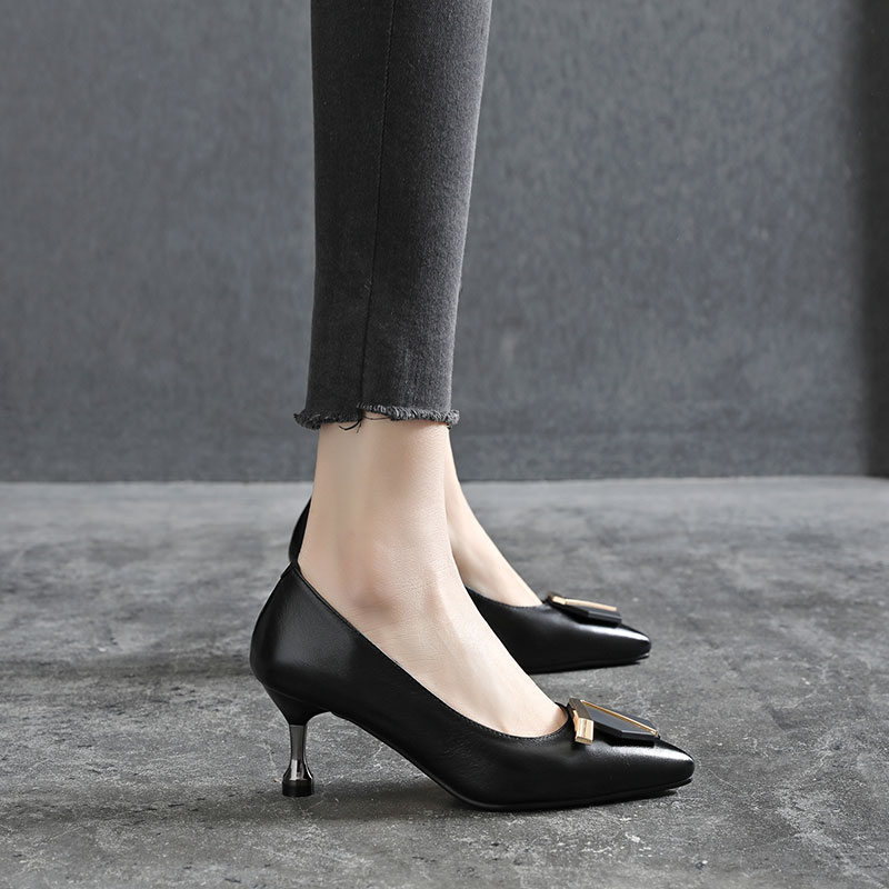 女士浅口尖头单鞋 头层牛皮真皮女鞋 皮鞋 软皮夏季 子春秋细跟高跟鞋